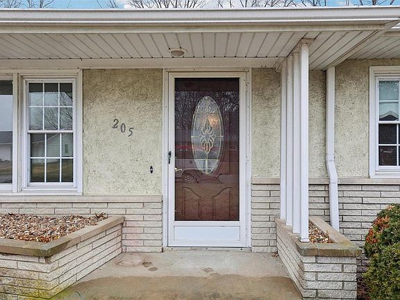 Take this opportunity to unleash your design skills and increase your property value thru sweat equity. Attractive 3 bed, 2 bath home on partially finished basement. This home features a large main floor living room, bathrooms on both levels, a huge lower level family room with stone fireplace, a kitchenette, office, & walk-in storage closet. All appliances are included. Front porch with brick planter boxes, enclosed porch between house and 2 car garage, and covered back patio. New breaker box and G.F.C.I. outlets in 2025. New water heater in 2022. Energy efficient furnace with humidifier and vinyl replacement windows. Located on a cul de sac on the edge of a small, rural village just waiting to be refreshed.