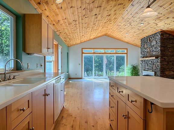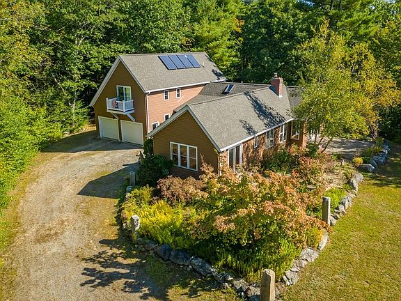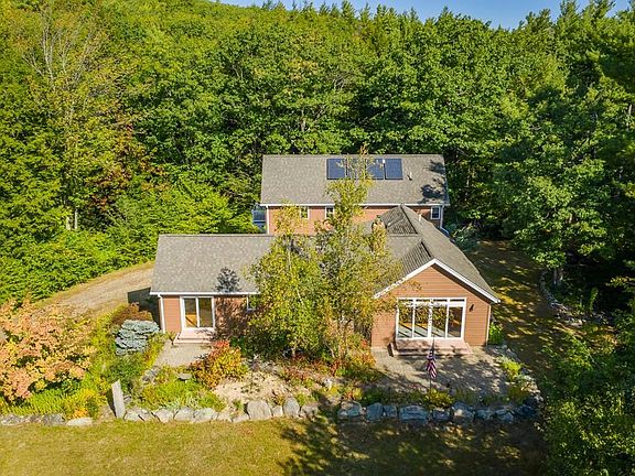 Are you a nature enthusiast or just looking for a special place to call home. This custom designed Contemporary home is nestled among 26+ acres offering complete privacy. The open concept floor plan is stunning beginning with the wood cathedral ceilings. Beautiful stonework for the wood stove in the living room is a focal point along with the full wall slider which leads out to a patio area. The versatile floor plan allows for a 1st floor master bedroom with double closets, custom shelving & slider to a patio area. If preferred, the 2nd floor bedroom offers a walk-in closet & full bath. Great space in the bonus room over the garage. Large laundry room with access to both the back yard and garage. Radiant heat, hardwood maple flooring, solid interior doors & natural woodwork. Mature landscaping, patios and walk ways. Owned solar panels. Additional wood stove in the basement. The enclosed porch with two sliders could be used as a 3-season room. Potential of two additional building lots.