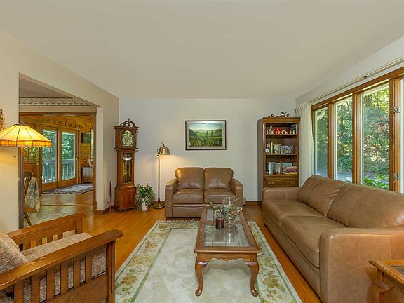 Looking for privacy? Then this is it. Lovely contemporary ranch nestled on 18.62 acres of picturesque property. Enjoy fishing, hiking or just relaxing on the deck. The property is bordered by a stonewall and has a pond and stream. You will love the magnificent 20' x 20' pine great room featuring, cathedral ceiling, hardwood floors, tall windows throughout the room and access to the deck. The very spacious eat in kitchen has a vaulted cedar ceiling, granite countertops, large granite breakfast bar, pantry and dining or sitting area that also lead to the deck. A formal living room with woodstove and formal dining room both with beautiful hardwood floors add to the beauty of this home. The master bedroom has a walk in closet and half bath. There are two additional good size bedrooms and a very large full bath. Main floor laundry room with slop sink. Anderson windows, new garage doors, new water softener, New Deck, Only minutes to the train, shopping and school.