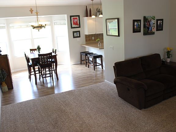 Pride and Perfection is shown in this home. Bright and inviting Great room with Vaulted ceiling, Large Dining area that open to Kitchen with bright white cabinets, Gas stove, pantry and door that leads to your inviting patio to enjoy, Main level laundry off kitchen and garage, large garage with two doors and additional deep space for your extra items, 9 ft ceilings on the main level, Master bedroom suite with large bay window, walk-in closet and master bath, 2 additional bedrooms and hall bath on main level, Lower level is finished beautifully with rec area (bar is not staying), den/bedroom, walk-out door, media area/ family area, full bath, utility closet and storage. This home is a must see.