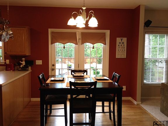 Home sweet home! Priced Reduced!. Desirable mature subdivision on Cary Parkway. Traditional brick front colonial on a deep cul-de-sac lot surrounded by privacy trees with solid hardwoods on the main level. Refinishing hardwood floor allowance included. New carpet, countertops, recent water heater and fresh paint. All stainless steel appliances, washer and dryer convey. Large rooms with family room built-ins and large deck off the kitchen. Large private fenced In backyard with Rainbow play system. Walking trails, parks and fishing ponds within walking distance. Low HOA dues. Fantastic friendly neighborhood and convenience for a great price! A must see.