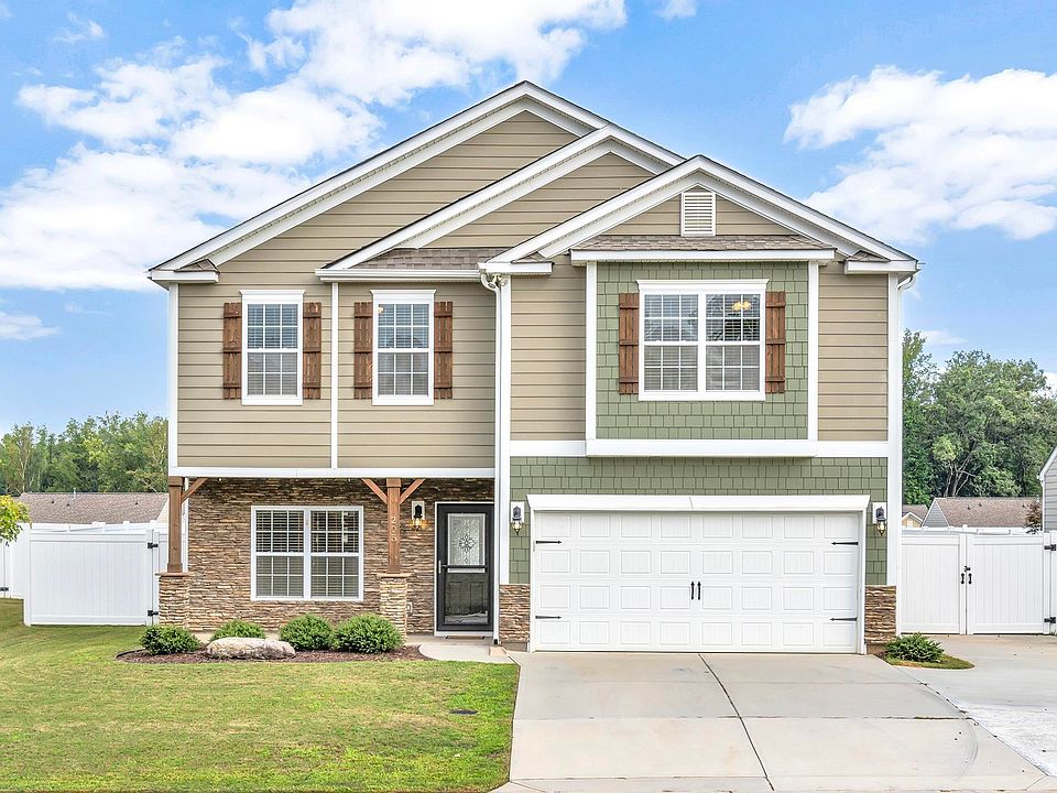 Welcome to 205 Lake Grove Road! This beautiful 4-bedroom, 2.5-bathroom home nestled in the heart of Simpsonville features approximately 2284 square feet of living space and is a testament to modern comfort and timeless charm with a prime location and upgraded features. Captivating you from the moment you arrive, this charming residence offers the perfect balance of curb appeal and functionality. The well-maintained exterior hints at the care and attention to detail that define this property. The heart of the home is undoubtedly the kitchen with all upgraded stainless steel appliances (including refrigerator, dishwasher, gas stove, & built-in microwave), granite countertops, kitchen island, and ample cabinetry. This kitchen will inspire your inner chef in the perfect place to gather with family and friends. The living room, with its cozy fireplace, beckons for gatherings on chilly evenings, while the dining area provides the perfect space for formal meals. Upstairs you will find four spacious bedrooms and two full bathrooms plus laundry room with custom built-in cabinetry. Enjoy the primary bedroom with en-suite bathroom and huge walk-in closet! Step outside to discover your very own outdoor oasis. The gorgeous custom covered patio is the perfect backdrop for family barbecues, gardening, or simply relaxing in the sun enjoying the full fenced yard. There's ample space for kids to play, pets to roam, and for you in this outdoor retreat you've always dreamed of. Need extra parking space? This home features an extra poured concrete pad that extends to the fence! Conveniently located about 5 miles from I-385, and only a few minutes from downtown Simpsonville (and just about 20 minutes from Downtown Greenville). Schedule your private tour today!