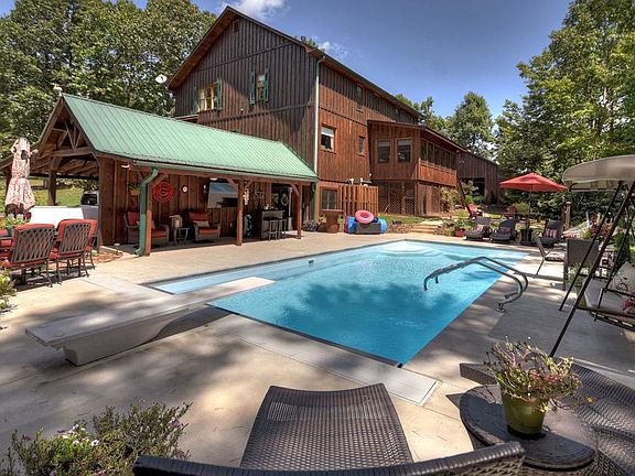 Craftsman Charmer with Farmhouse Feel...this 4-5 bedroom/4.5 bath home boasts flowing layout & plenty of room to roam...master on main w/ ensuite bath features claw foot tub & tile shower, mix of wood, drywall & shiplap for warm interior, second level reading nook overlooks level landscaped yard & opens to bedrooms with private baths + large multipurpose room & addt'l laundry & storage...sprawling wrap covered & screened porches, inviting foyer & sunroom, full finished terrace level w/ wet bar, rec room, den & guest qtrs + workshop area, upper & lower covered parking, surplus of outdoor storage, fabulous firepit, concrete drive, updated systems & appliances, just finished salt water pool w/ electric cover & outdoor entertaining area, multiple indoor & outdoor fireplaces, home office & more...all of this within walking distance from Lake BR day use area & minutes from downtown Blue Ridge & marina...great full time home or vacation rental with all paved access and ultimate curb appeal...a must see!