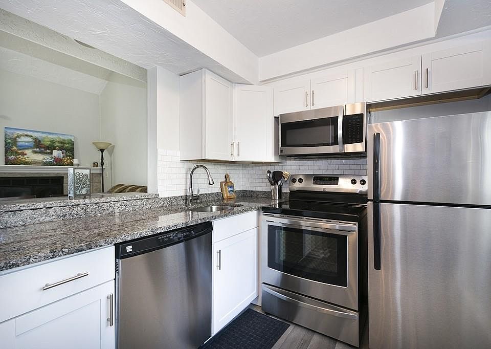 - Kit Dscrp: Countertops - Stone/Granite/Solid, Breakfast Bar / Nook, Dining Area, Stainless Steel Appliances, Flooring - Laminate, Cabinets - Upgraded
