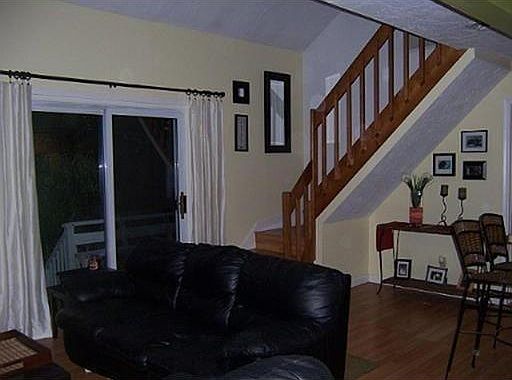 Unit is immaculate, spacious and renovated. Features a bright rear loft style townhome situated nicely in back of complex, fireplace in liv rm, newer kitchen w/recessed lighting, laundry in unit(stays), hardwood floors throughout first level, renovated bath, sliders to a private deck and fenced yard... dedicated parking spot and one visitor spot right outside door. close to commuter,red line, 93,rt. 3a and Boston. Great sunlight. Perfect for roommates who want style without Boston price.