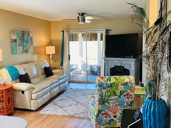 Gated community with waterway view. First floor end unit. With screened and vinyl tinted windows on 9x13 porch. Ceramic tiled entry and kitchen. Vinyl plank flooring in living/dining area. Master bedroom and second bedroom. Ceramic tile and walk-in shower in master bath. Ceramic tile with tub/ shower in guest bathroom. Includes stove refrigerator microwave new dishwasher and new disposal. New Heating&Air installed 6/2020