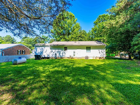 Stylishly updated 3 bedroom open floor plan Ranch home on .31 acres in a great location with easy access to Garner, Raleigh and Clayton! 5 minutes to White Oak Shopping Area. LVP flooring, shaker style cabinets, tile backsplash, butcher block counter tops, stainless steel appliances, updated light fixtures, and recently painted. New tankless hot water heater and 200AMP panel installed in 2023. New barn door leads to laundry and mud room. New range just installed! Unfinished storage room has rough-ins for another full bathroom to be added off the primary bedroom. Large yard that is great for entertaining with storage building. No HOA fees or city taxes! Single family living at a great price!