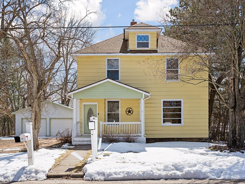 Built in 1905, this charming home exudes timeless elegance and character. The main floor offers a spacious layout adorned with original hardwood floors and woodwork, featuring an inviting formal dining room, a cozy living room highlighted by a brick fireplace, and an impressive original staircase. The finished attic reveals additional versatile living space. Outside, a spacious detached two-car garage with a convenient shop area and extra storage provides practical convenience. Situated close to the golf course, this residence offers both historic charm and modern amenities for comfortable living.