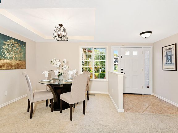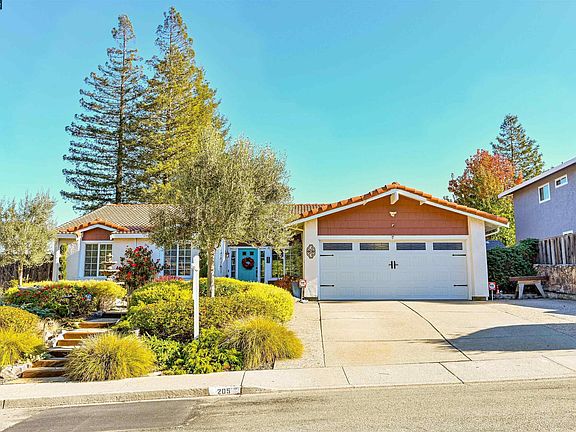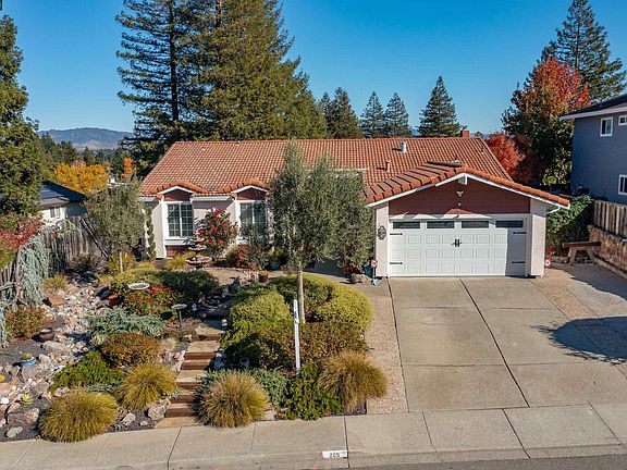 Awesome 1 story home in Bollinger Hills. Very Private / elevated home with partial VIEWS of Mt. Diablo. Lots of upgrades including: Fresh interior paint / re-textured ceilings / Newer Milgard Windows / Remodeled Kitchen & Bathrooms / Tile Roof plus much more. Kitchen: 6-burner Viking Gas Range / Whirlpool Fridge / Bosch Dishwasher / KitchenAid Trash Compactor / Pantry / Granite Tops and Custom cherry wood Huggy Bear cabinets w custom stained glass panels, roll out double drawers, double stacked lazy susan, slow close drawers. Electrolux Washer/Dryer. Family room w Hardwood floors inc Electric fireplace insert w fan. Primary Bdrm: Beveled glass closet doors, plantation shutters & custom built-in closet organizers. Primary bath: Custom Walnut antique vanity w double sinks & 3 mirrors. Insulated oversized soaking tub by St. Thomas Creations. Remodeled Guest bathroom. Milgard windows throughout with Anderson wood slider in family room. Shutters in family room, 1st & 2nd Bdrms & primary bdrm. Many mature japanese maple trees. Just a short walk to Community Pool, Cabana, Tennis Courts, Bocce-Ball Court, Kids Play-Tot Lot with BBQ and Picnic Tables... all for $40/month.