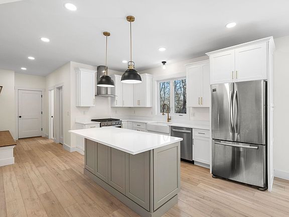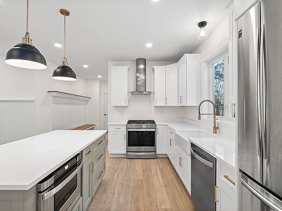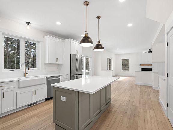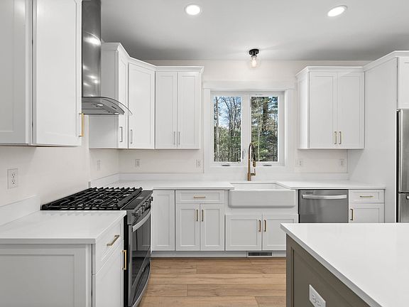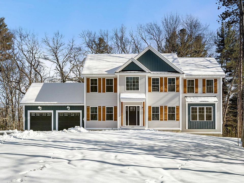 The perfect mix of colonial and craftsman style featuring white siding with black windows and wood accents blended with designer-trending finishes and lots of high-end trim. Featuring four bedrooms, 2.5 baths and an open concept first floor living space flush with natural light. From the bright white shaker style kitchen with sleek black tops and brass pulls, to the stainless appliances and clean white Kohler farm sink. Maintenance-free Coretec flooring is light in color variation, always keeping today's trends in mind. The living room features a gas fireplace with modern bead board trim and flanking windows. Just off of the kitchen sits the dining room with a stunning brass light fixture and one of a kind trim. Upstairs is home to four bedrooms, a large and separate laundry room, spacious guest bath and a truly dreamy primary suite. Soaring ceilings in the primary bedroom give way to the sprawling bathroom. Just steps behind the white barn door is a custom tile shower, large glossy white floor tiles and a soaker tub with light above. Last, but certainly not least, is the over-sized primary closet with more than enough space for clothes for all seasons. Finishing off this DHB new build is the 2-car attached garage, farmer's porch and maintenance free Trex rear deck overlooking woods all the back to World End Pond. Located in the coveted Barron School district, and less than 5 minutes to all that Route 28 and I-93 has to offer Salem residents. Seller agent related to Sellers.