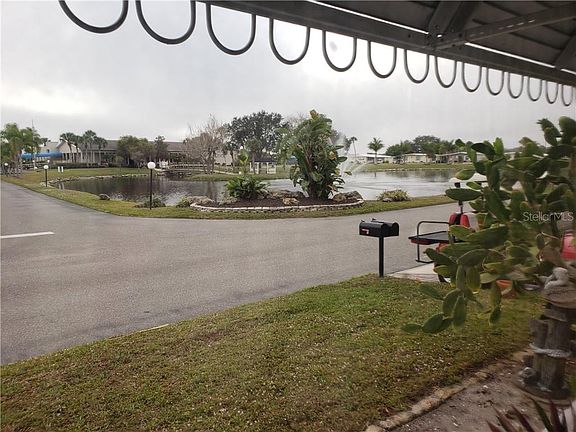 A ROOM WITH A VIEW! While sitting in the oversized bonus living room enjoy views of the beautiful lake with fountain just across the street. or enjoy the green space and 2nd lake view from the screened lanai in the back of the home! Views galore are waiting for you! This is a great floor plan with a lot of possibility! A membrane roof over was put on the home in 1999 and the Central AC was installed in 2017. A fabulous and charming kitchen with a breakfast bar to eat or work at between the kitchen and living and dining area. A fantastic large Florida Room for entertaining adds to the endless possibilities this home offers! No reason to drag the laundry across the driveway as it's all enclosed within the home just off the Florida room and in shed. All furnishings will be included, there are some personal items still in home which will be removed prior to closing. This is a foreign seller so no investors please, you must take residency for at least 6months per FIRPTA.