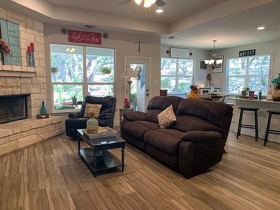 HERE'S YOUR CHANCE to live in Canyon Lake on .88 acres of beautiful wooded property and still only minutes to the water's edge at Potter's Creek boat ramp and recreational area! This 3-year old home offers 3 bedrooms, 2 baths, and outdoor living areas to spread out! Open floor plan with a large island kitchen, granite counters, stainless steel appliances, a corner fireplace, and wood look tile throughout create the RELAXED LIFESTYLE we would all like to enjoy! Schedule a showing today!
