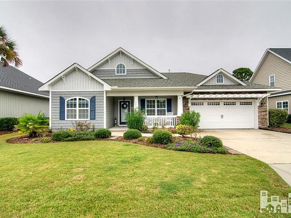 Craftsman style home features exterior stone accents, arbor over carriage garage door and stone tapered pillars. You'll be instantly welcomed as the rocking chair front porch begs you to sit and stay for a while with its view of the community pond. Chef's dream kitchen boasts granite countertops, 42'' bead board cabinets, a natural gas stove, stainless steel appliances, and recessed lighting. Great detailing throughout; built in cabinet with shelving in great room flanks natural gas fireplace and oak hardwoods in great room, kitchen, foyer, dining room and hallways. Great room and screen porch comes pre-wired for surround sound. Split floor plan with master bedroom featuring trey ceiling and spacious walk-in closet. Master bath suite has double vanity, bead board wainscoting, and a separate shower and garden tub. Relax on the screen porch and enjoy the privacy of this fenced in backyard. Superb location just minutes from Wrightsville Beach, Mayfaire and all the amenities of Wilmington!
