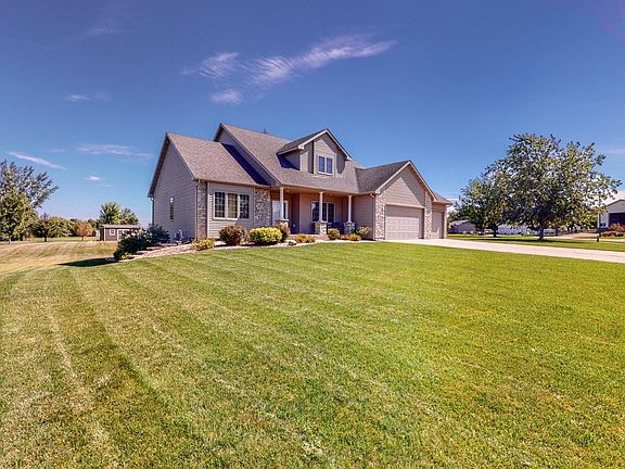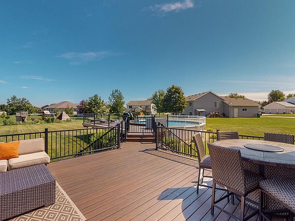 The soaring ceiling height and open design of this 5 bed/4 bath home gives it an airy and spacious feel with the 9 foot ceilings throughout the main floor. Beautiful maple woodwork, LVP flooring and granite countertops add to the appeal. Main floor primary ensuite and laundry gives you one level living if required. This home is designed for entertaining! The kitchen has a large island and eat-in dining area which opens to a huge 2 tiered deck. The low maintenance composite deck surrounds a large above ground pool. Perfect for parties and summer relaxation. A one acre lot provides plenty of space for gardens and privacy. The lower level has tall ceilings with many daylight windows, along with a large family room, bar, and room for a media area with game tables. This home sits in Racine, which is just 14 miles south of Rochester on a state highway for easy commute. Stewartville school system.