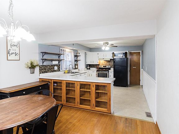 Welcome home to 205 Locust Street! This ranch boasts 3 bedrooms and 1 full bath on the main floor. From the front entry, step into the dining area featuring original hardwood floors and breakfast bar with ample attached cabinetry. The living room is just off to the right and boasts newer laminate flooring and ceiling fan. The eat-in kitchen comes with pantry, disposal, electric stove, and refrigerator and the sellers are leaving the stand-alone microwave as well. The updated full bath has been upgraded with a newer tub/shower enclosure, updated vanity, flooring, and mirror. With a little TLC the partially finished lower level can be brought back to life. Washer and dryer are located in the lower level and are included in sale! The one car detached garage and large backyard are a bonus! Bring your ideas! Property is being sold "as-is", seller to make no repairs or inspections.
