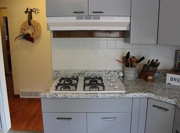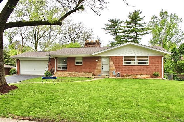 A brick and stone Belleville home featuring stone flowerbeds, great landscaping and a 2 car attached garage with additional storage space. Entering into the foyer to the left is the newly painted eat-in kitchen. The spacious living room hosts a stone wall with wood burning fireplace and and a storage closet. A large 16 x 12 sun room is not included in the square footage. Coat closet in the hall. Master bedroom with ceiling fan connects to the full hall bathroom. A second bedroom with ceiling fan finishes up the main floor. The lower level has a huge great room with exposed brick wood burning fireplace, large bar as you enter the great room and another smaller floating bar at the other end. An additional bonus room with access to the unfinished area. A bathroom featuring shower only. Laundry area is massive with plenty of cabinets and counter-tops for folding! Nice sized covered patio in the fully fenced backyard! This home is a must see! 1 year HMS Warranty Included!