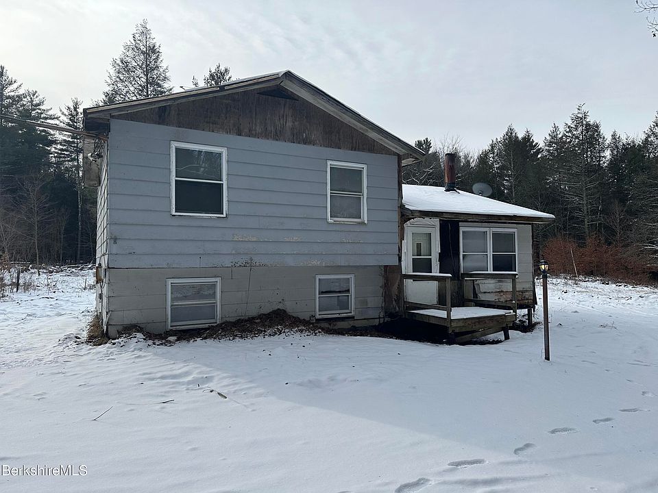 Split level home situated on just over 2 acres of land in the quaint village of Southfield in New Marlborough. Located in private setting with level land that is partially cleared and wooded. Living and kitchen area located on the middle level with three bedrooms and up bathroom on the lower level. Many options whether you choose to restore this home or build new!