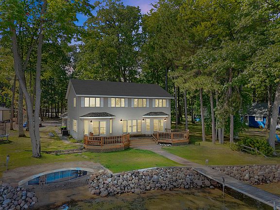 This seven-bedroom, four-bathroom home on Higgins Lake offers the perfect combination of space and stunning views. With 100 feet of beautiful frontage, five of the bedrooms overlook the water, including a master suite with a walk-in closet, en suite bath, and oversized windows framing the lake. The spacious kitchen flows into the dining and living areas, both of which open to a large deck — also accessible from the master bedroom — creating an ideal setting for entertaining or quiet mornings by the water. Set on a generous lot with a paved driveway, the property also includes a garage for added convenience. Being sold furnished, this lakefront retreat is ready to enjoy from day one.