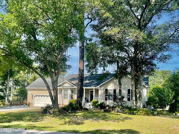 GREAT LOCATION, NO HOA, well maintained 3 Bedroom, 2 Bathroom home in the heart of Cape Carteret. MUST SEE! Water access is at the end of the street with a boat ramp and day dock. Very close to the beaches, shopping, grocery store and restaurants. HVAC 2015, still under warranty. New LVP flooring throughout the home in June 2022. Granite counters. Boat ramp sticker obtained at the Town Hall for $225/year. 2 car garage. Wired 16 x 24 work shed. Concrete pad for boat or RV. Septic pumped and inspected 6/22. Termite Bond and inspected 3/22. Has a well for watering grass and washing cars/boats.