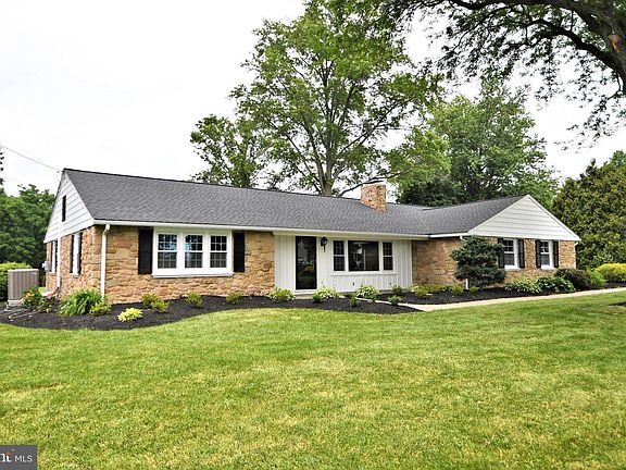 Showings Begin Monday, February 6. Have you been searching for a beautiful home with one floor living? Don't miss out on this REMARKABLE 4 Bedroom 3 Full Bath Ranch Home in Souderton School District. Completely renovated from top to bottom. The covered slate front porch leads you into the spacious living room with guest closet and stone, wood burning fireplace. The beautiful eat-in kitchen features brand new soft close cabinetry, quartz countertop, stainless steel double sink and appliances including a glass-top electric stove with air fryer, beautiful tiled backsplash and tile flooring. The dining room offers gorgeous views of the beautiful, private backyard and lots of light with an exit to a brand new EP Henry paver patio. Adjacent to the dining room, you will discover a large sunroom with recessed lighting, all new windows, and another amazing view of the backyard and exit to another EP Henry paver patio. The master suite offers two closets and a full brand new bath with stall shower and tile flooring. You will next discover 3 additional bedrooms and 2 full brand new bathrooms! The laundry room offers plenty of space including a closet! Next head down to the AMAZING finished lower level--perfect for plenty of entertaining and an extra room for an office/workout room. Plenty of possibilities! Two car side entry garage! All of this on a gorgeous 1+ acre lot with new 16 x 18 shed! New Roof, New Heater, New Hot Water Heater, Some New Windows, Gorgeous Laminate Wood Flooring Throughout and MUCH MORE!