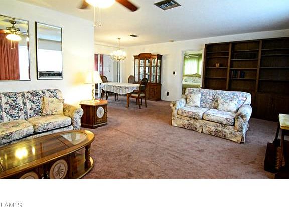 Huge two bedroom home with lake view located on an oversized corner lot. This split bedroom floor plan boasts of over 1625 square feet per the Lee County Auditor. It comes completely furnished with all appliances, including washer and dryer. You don't even need to bring your pots and pans! The Florida Room is huge and overlooks the lake, it also faces east so you can enjoy afternoons and evenings in this wonderful space. This home is located in the desirable Willow Lake South Subdivision. The A/C was replaced in 2013, the Hot Water Tank was replaced in 2015 and the Sprinkler System was serviced within the last 6 months. The carpeting was professionally cleaned in May, 2015. If you are looking to make an "easy" move, don't miss this fabulous home. All you need to do is hang your clothes in the closet. Make your appointment to see this spacious, move in ready home!
