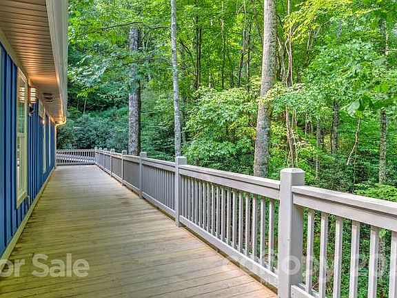 Completely remodeled home in the woods, yet only 20 minutes to Asheville. Everything is new in this home - flooring, paint, bathroom, kitchen, huge wrap around deck, etc. The quality of the builder shows. The kitchen opens to the living room and features lots of cabinet and counter space, stainless steel appliances, corian countertops and a breakfast bar that is double sided for eating! The living room features an electric fireplace. All engineered hardwood throughout with tile flooring in the bathroom. The new deck wraps around the house and overlooks the woods and a creek. Back on market due to buyer financing issue. Property is on spring water