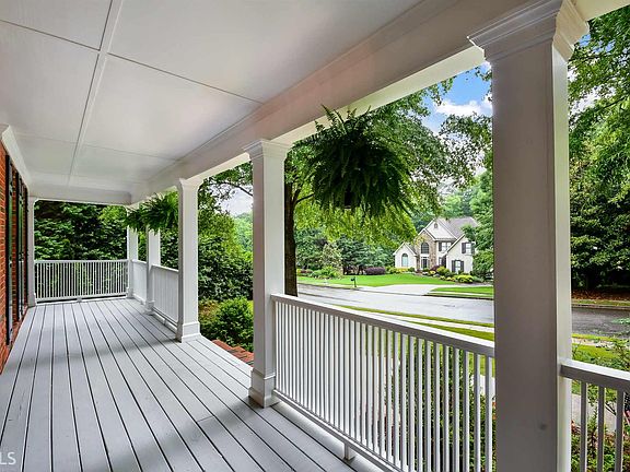 Curb Appeal is a "10". This home has it all...rocking chair front porch, cul-de-sac lot, level back yard, master suite on the main level and partially finished terrace level. Hardwood floors on main. The soaring 2 story entry opens to the 2 story great room featuring a brick fireplace with gas starter and opens to the updated, gourmet kitchen boasting white cabinets, island, granite counters, stainless steel appliances, built-in desk and keeping room. Doors open to spacious screen porch and deck overlooking the private, level, backyard. Powder and Laundry Room on main. Master suite on Main features trey ceilings with a door leading to screen porch and glamorous master bath with tile flooring, jetted tub, separate shower, double vanities with granite counters and walk in closet. Guest bedroom also on main with on suite bath. 2 spacious bedroom up each with their private baths and walk in closets. Partially finished terrace level with recreation room and exercise room/office. Lots of unfinished space awaits your finishing touches or lots of storage. 2 sides of terrace level are daylight and is stubbed for a bath. Popular swim/tennis community. Award winning North Fulton Schools.
