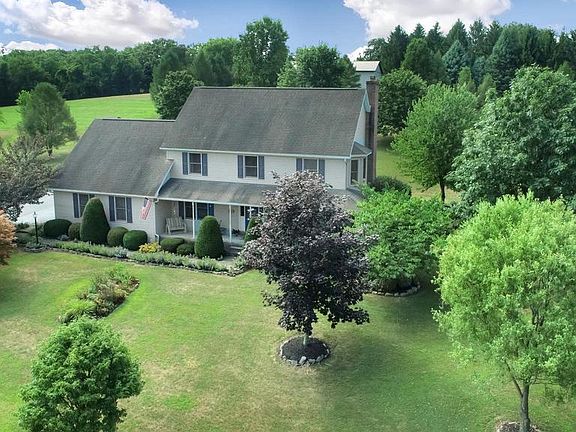 Welcome to this beautiful 2 story, 4 bedroom, 2.5 bath home in Halifax School District. As soon as you turn onto the property, you're warmly welcomed by mature Bradford pear trees lining both sides of the driveway and immaculate landscaping. The walking path toward the front door features a vibrant flowerbed that frames the front door and complements your large wrap-around porch. Here, you can take in the fresh air and mountain views as you enjoy your morning cup of coffee. Open the front door to a foyer with glistening hardwood floors, a family room immediately to the right and formal dining room to the left. Follow the foyer straight through to the back of the house where you will find an open concept living/dining area with large bay windows providing natural sunlight, a brick fireplace with propane gas insert, and newly replaced energy efficient French doors that lead directly to your backyard oasis. Beside the dining area, you'll move into a spacious kitchen with large, hardwood cabinets for fantastic kitchen storage accompanied by an additional pantry storage closet. Through the kitchen and toward the garage entrance, is a half bath and full laundry room with a wash tub. Heading upstairs to the second level, you will find all four bedrooms, two full bathrooms, an enormous "bonus room" with brand new laminate plank flooring. The spacious master bedroom features its own private bathroom and large walk-in closet as well as more bay windows with a comfortable window seat to enjoy those mountain views. If views aren't enough, step outside to an enormous back patio, complete with flagstone extension, a built-in fire pit, and fish pond with a functional waterfall where you can enjoy the calming sounds of nature. New solar panels on the roof capture the abundant, direct sunlight to offset rising energy costs. You can also enjoy a wired stereo system that plays music through nearly the entire house as well as the outdoor patio space. This home also has a fully unfinished basement, that if desired, could add significant finished square footage. With nearly two acres of land, you'll have all the privacy you could want with the convenience and proximity to modern amenities. Don't miss this chance to own your dream home!