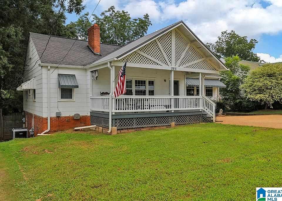 Own the "Most Popular Porch" in the city! This 3 bedroom, 1 bathroom home has been lovingly maintained and conscientiously upgraded. A stone's throw from Veteran's Park, it has one of the most popular porches in Talladega, newly painted and begging to be enjoyed during quiet summer days and nights. The inside of the home features a large living room with a gas fireplace, gleaming hardwood flooring, a completely remodeled kitchen with all stainless steel appliances, brand new flooring in the super cozy additional room that could be used as an office or den, and new ceiling fans. The laundry area with washer and dryer are just off the kitchen. The rest of the home features a large basement with garage door, built-in convertible BBQ pit, storage shelves, and a storm shelter; new gutters on front of the home, and a fenced backyard. The kitchen has been completely rewired, the electrical has been upgraded entirely, and the interior beautifully repainted. You do NOT want to miss this one!