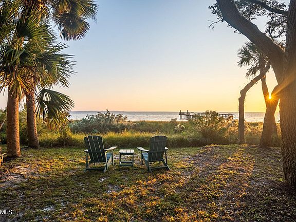 Enchanting 2.20 acre Oceanfront estate with private dock. Enjoy sunrise and moon rise views over the ocean from the screened in porch or out on the dock while listening to the ocean waves. Peace and tranquility abound at this property surrounded by legacy live oaks. There's even a greenhouse for the gardener. Come make this three bedroom, two bath beauty yours. Original hardwood floors throughout. Cooking in the gourmet kitchen for oceanfront parties will be a breeze. Enjoy a fire in either the family room or formal living room as this home has two big fireplaces to choose from on a chilly evening. Eleven foot ceilings contribute to the spacious opulence of this one-of-a-kind Oceanfront home. Fish, shrimp, crab off the dock or dig cherrystone clams on the beach right in the back yard.
