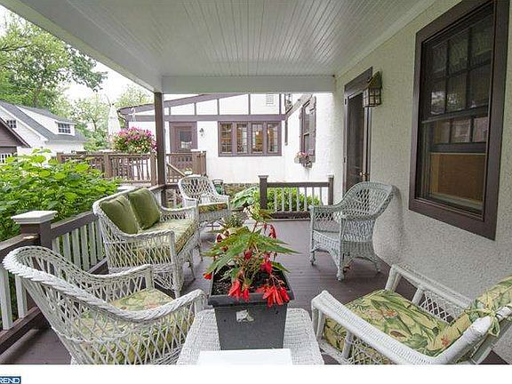 Make your home in the heart of Wayne, just a few minutes walk to everything! This vintage Wayne home offers charm, character, beautiful backyard that is secluded and screened by a garden adjacent to the churchyard, detached two car garage, an open deck plus a covered porch and lovely plantings, and that is just the outside! The interior features the architectural details that date to its construction in 1910 and have been beautifully maintained and updated. Heart pine floors throughout most of the house, pocket doors, 5 panel solid interior wood doors, and detailed wainscoting in many rooms are just a few special features. Lovely beamed ceiling LR w/fp and wainscoting, two sets of French doors that step down to FR w/custom bookshelves and door to covered porch, and spacious DR also w/ wainscoting Add to that the stunning new kitchen and breakfast room/mud room with new PR and door to deck, and you have a wonderful home with all the living spaces for today's lifestyle. The 2nd flr features the MBR with walk-in closet and MBA, updated Hall Bath, 3 add'l Bedrooms and a bonus room/office with laundry facility. Hdwd floors throughout 2nd and 3rd flr, and 3rd floor has 2 charming BR's, a large storage closet, and a walk in attic. This true "walk to" vintage home provides the opportunity to enjoy the many pleasures of living in this sought after town , in a home that still maintains the characteristics of its heritage.