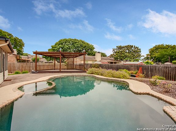 PRICED OVER 18K BELOW BCAD!!! Well maintained, Sitterle built, 4 bed 3.5 bath home by original owner! Updates include new roof (2/19), pool refurbished (2018), water heater (less than 2 yrs old), and HVAC (less than 5 years old). Spacious bedrooms with walk in closets, master bedroom down, screened in porch, remote controlled gas fireplace, epoxy garage floors, and a beautifully landscaped backyard with decking, pool, and pergola! Convenient to 1604, 35, and Randolph AFB. Judson ISD. No HOA!