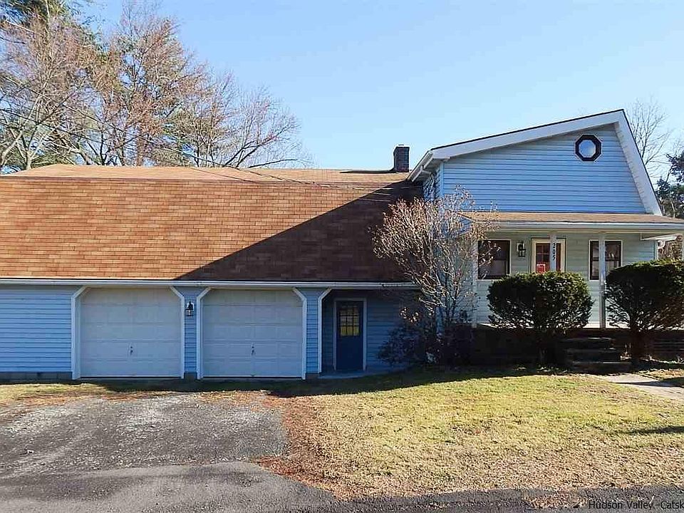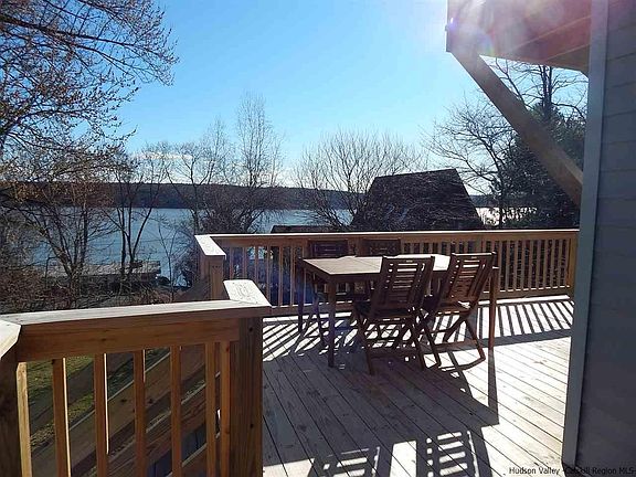 This adorable renovated farmhouse circa 1900 has been reborn! Clean, bright and airy, this little gem is in absolute move in condition. Large open living space with exposed beams, a custom brick wall with a wood stove hookup and a soaring living room ceiling over 13 feet high. What an amazing space. Newly upgraded kitchen with beautiful wood cabinets, granite counters will be a pleasure to work in. Everything is perfectly laid out for easy cooking. Custom built dining bar is ideal for family dining, game time or as an island for serving food. Enjoy dinner and drinks on the newly replaced deck overlooking the glorious Hudson River. Have your morning coffee on the private balcony while you enjoy the river wildlife and the ships sailing by. The downstairs bedroom would make a perfect in home office with a separate access for privacy. Conveniently located within a few miles of all that Kingston has to offer. Rhinebeck, Woodstock, Saugerties, New Paltz and even Poughkeepsie are a comfortable traveling distance away. A wonderful place to get away from the pressures of City life. The oversized 2 car garage (30x30) with a full 2nd story offers outstanding possibilities for so many things! Create an amazing studio, workshop, additional living space (subject to zoning) The sky is the limit!