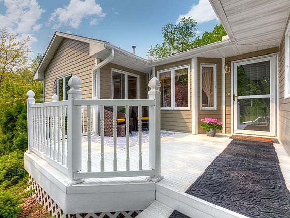 Spectacular w/o rambler on the beautiful Mississippi River! Showcasing 4 bdrms & 3 baths, an open & vaulted main floor plan and a nicely finished lower level. Wonderful features include 2 fplcs, skylights and a convenient main level laundry rm. Plenty of spaces to relax throughout with a delightful sunroom, private master balcony, 2 decks & lower level patio. Bright & cheerful kitchen is great for entertaining & every day w/ a large breakfast bar & center island! Terrific storage options for all your vehicles, sporting equipment & yard supplies in the 2-car garage up front & a 2-car tuck-under garage in back. Situated on quiet cul de sac w/ 100 ft of river front & stunning nature views! Close to schools & quick highway access, and within walking distance to great shopping.