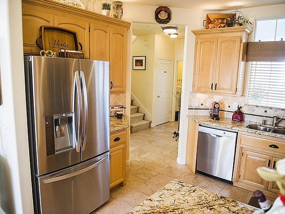 The gorgeous 205 Montclair Lane has upgrades galore for the most particular home buyer. The two-story home has three bedrooms, two and-a-half bathrooms with an updated kitchen including stainless steel appliances, granite countertops, breakfast bar, under and upper cabinet lighting, newer fixtures, and an eat-in kitchen dining area with Italian porcelain tiles. Custom built living room entertainment center with gas fireplace, recessed tv opening, and hidden wiring. Remodeled bathrooms with custom windows, mirrors, and easy access pocket doors. UV coating on south and east facing windows to protect hardwood floorings and help control interior temperature. Additional amenities include: nest thermostat, low-flow water fixtures, indoor laundry room, attached two car garage, drought resistant plants in yard, interior fire sprinklers, water heater replaced in 2014, extra storage in garage and under stairs. Well-maintained neighborhood with CCRs and HOA guidelines.