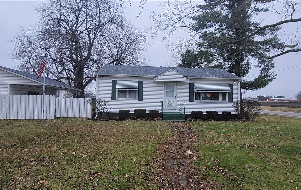 Take a look at this cute, quaint home. Situated on over a quarter acre, this corner lot home has lots of potential. New roof and siding in 2020, new gutters in 2022. The garage has a covered porch with a concrete floor for entertaining. All room dimensions, sq footage and year built are approximate.