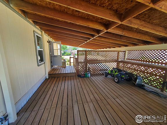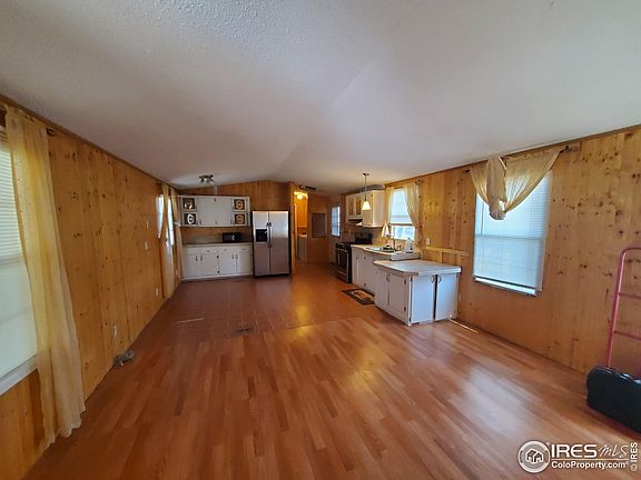 Great Home in a tiny park in Berthoud for mature adults. Lot rent only $400.00 per month! 1 car carport, 16 X 23 front covered deck, covered entryway. 3 bedrooms, 2 bathrooms. Primary Bathroom has jetted tub. Beautiful new pine paneling through most of the home. 2 big sheds. 8 X 12! 1 has electrical and could be a little get away! Large fenced in yard. Evaporative cooler. New water heater 2021, New roof approx 4 years ago along with the furnace. Guest bathroom needs a little finishing. Gas stove, Refrigerator, Washer & Dryer all included in price. No pets have been in home. Buyer or buyer's agent to verify measurements & lot rent.