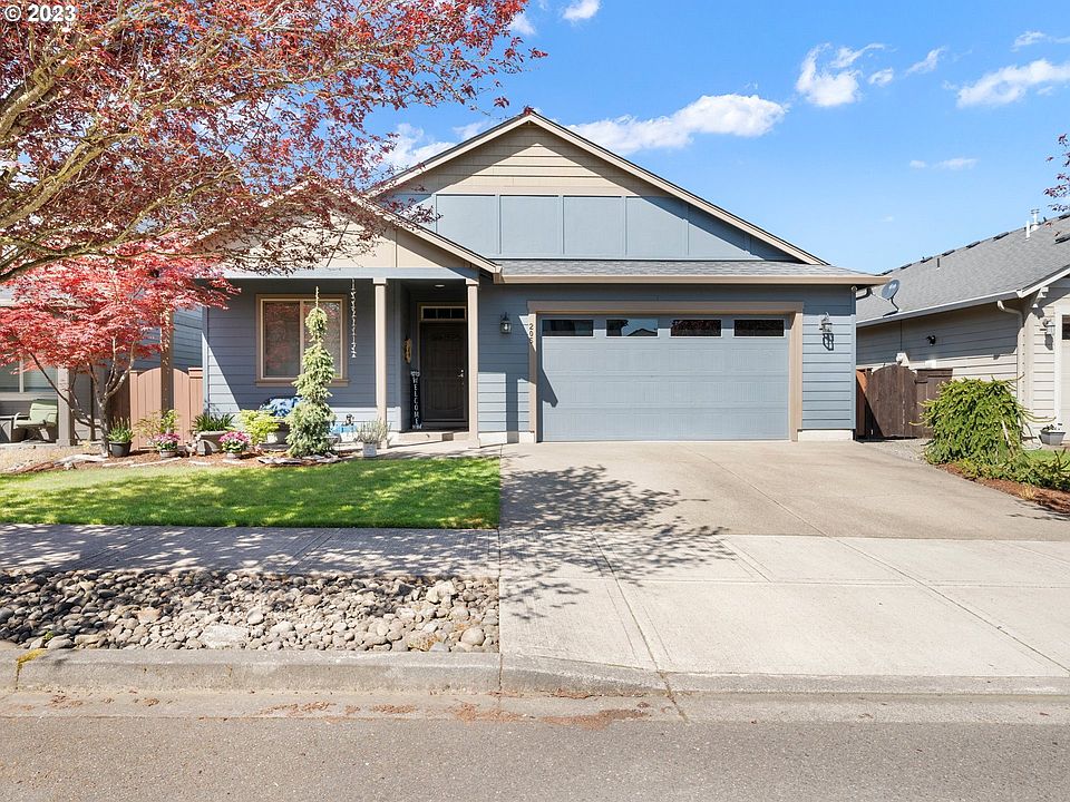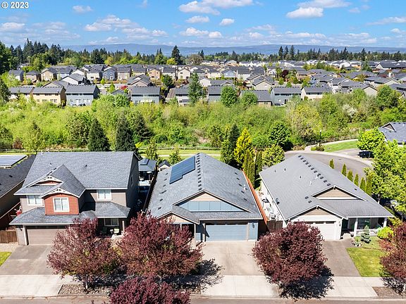 This is the one you have been waiting for! Light and bright in the perfect Ridgefield location. Solar panels mean you have no electric bill! One level, open concept with spacious feel. Backs to greenspace, giving privacy. New appliances, new paint, lovingly maintained and in immaculate condition. Neighborhood amenities include trails, parks, sport courts, and warm sense of community. Enjoy summer bbq's on the covered patio, cozy up next to the gas fireplace on chilly mornings. Plenty of lawn space for a garden or other activities. Don't miss this one!