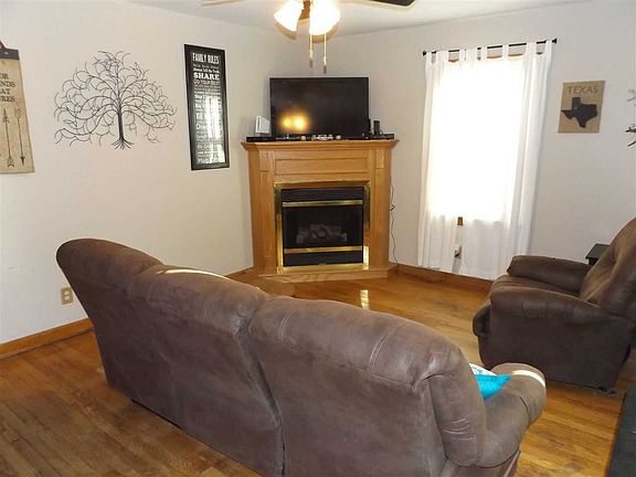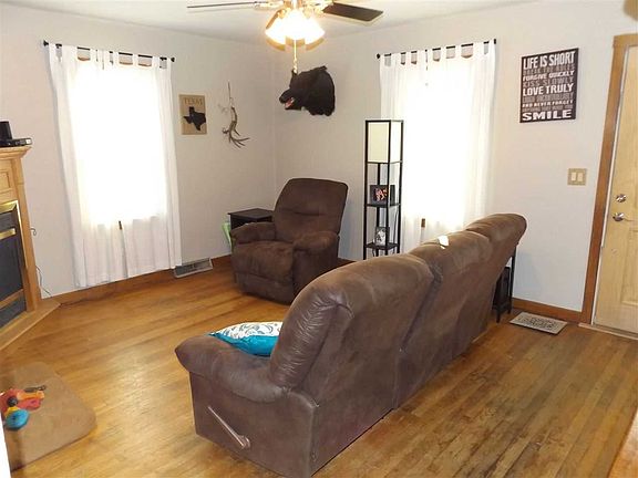 This home can be yours and should be yours. With original hardwood floors bringing you in from the covered porch, you can enjoy taking it easy in the living room with a gas log fireplace. Also on the main floor is 2 bedrooms, 1 full bathroom, and a quaint kitchen with newer appliances. The upstairs has 2 rooms, 1 large and 1 smaller that could be used as bedrooms or whatever you may choose. A full basement, with a garage door(very handy) that ties into a chain linked, fenced in back yard, is perfect for pets or children.