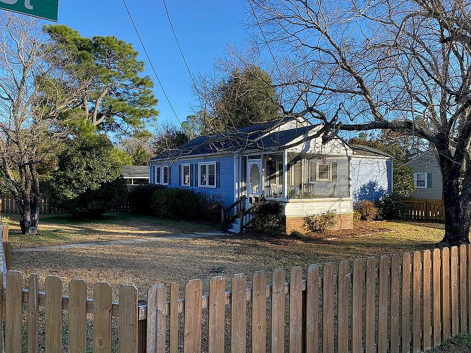 Nice cozy cottage home with 2 bed, 1 bath, den, open dining-kitchen, sizeable laundry and mud room, spacious attic, screened in porch, detached carport with nice storage. Nice fenced yard. All new bath fixtures, new kitchen cabinets, microwave & dishwasher. Total new flooring throughout.
