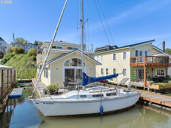 Step aboard this stunning 2021 remodeled FLOATING HOME & bask in the sunlight flooding every space. This home was rebuilt from the studs up w/ new siding, windows, electrical, plumbing, drywall, & more. The open floor plan seamlessly connects the living room, dining area, & kitchen, featuring a gas range, full-sized dishwasher, & meticulously maintained butcher block countertops. Enjoy morning coffee on the deck & jump into your protected swimming "lagoon". Plumbed for gas fireplace & outdoor grill, making it perfect for indoor/outdoor living & summer bbqs. The large primary suite boasts vaulted ceilings, huge windows, & 3 closets w/ beautiful barn doors. The versatile loft space is filled with windows boasting 360 views, ideal for a home office or cozy sleeping quarters. Current owner added mini-split systems & a luxurious soaking tub/steam shower. This coveted concrete float is rated 4 & requires minimal maintenance. 5 Cedars Moorage is a quiet, gated moorage which offers assigned tandem parking space for two cars & an updated ramp. Located in North Portland with easy access to 33rd ave, MLK Blvd and 1-5, you can have the convenience of living in the city all while enjoying the tranquility of living on the water and an in an amazing community. This home is a must-see! 3 month minimum for rentals. Slip is interior, buffered from the breakwater. Come see for yourself if you're ready to make the PLUNGE!
