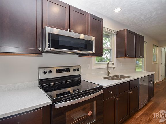Checkout this 3 bedroom, 2 bath home in Wapahani schools.  The seller has completed many updates and this home is ready for a new owner.  You will enjoy the brand new kitchen with solid surface countertops.  The range, refrigerator, dishwasher and microwave are brand new and will remain with home! All new flooring and fresh paint throughout the home.  The bathrooms have also been upgraded.  Enjoy rural living on the approx. 0.45 acre lot with farm fields on two sides of the home.