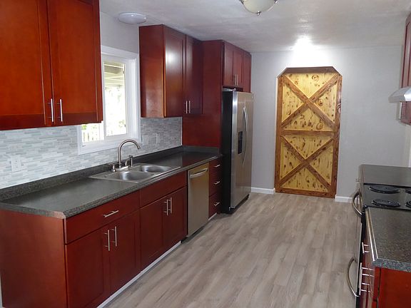 Complete interior remodel! Beautiful renovation with all new flooring, kitchen cabinets, brand new bathrooms, new plumbing & electrical fixtures, all new stainless steel appliances, and more! Large living room, kitchen and office space. Master bedroom walk-in closet and on suite bathroom. Nice sized newly painted home with new windows and new metal roof, on a large lot with plentiful parking, garage/carport, quiet neighborhood and fenced back yard. Terrific back deck and 2 sheds. It's a must see!
