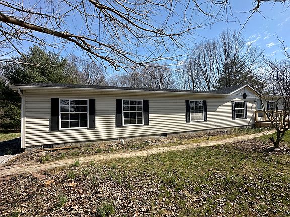 RARE FIND! This 4 bedroom, 2 bath home sits on 1.69 acres just on the edge of town. Completely remodeled with over 2,000 square feet of living space and an open concept, split floorplan. The main living area features vaulted ceilings, a fireplace and sliding patio doors that take you out to the partially wooded back yard. The kitchen offers plenty of cabinets/countertop space and stainless steel appliances that stay. New laminate and carpet throughout the home as well as updated black fixtures throughout. Updated master bathroom features two separate vanities, a garden tub and a separate walk-in shower. Spacious laundry room has plenty of room for storage or for a mudroom area. New roof and front/back decks in 2024. Plenty of parking outside with the long driveway. Don't miss out on this one!