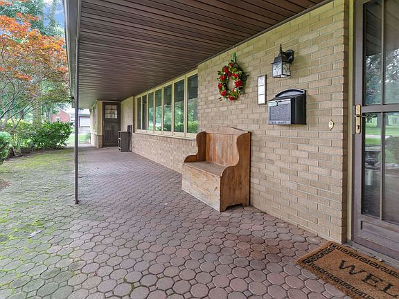 This delightful mid-century brick ranch offers the perfect blend of small-town charm & modern comfort. Situated on a generous double lot spanning half an acre, this spacious home welcomes you with a stunning 38-foot covered front porch that practically begs for rocking chairs & sweet tea. Step inside to discover a thoughtfully designed layout featuring 2BR/2.5BA across 2,367 square feet of living space. The heart of the home showcases a beautifully remodeled kitchen featuring abundant cabinetry, elegant Silestone countertops, stylish tile backsplash & stainless steel appliances. A convenient breakfast bar makes morning coffee dates a breeze. The impressive living/dining room combination features bleached mahogany walls & ceiling, complemented by a cozy gas log fireplace for those crisp Illinois evenings. Natural light floods the main floor family room through numerous windows, while the four-season sunroom provides year-round enjoyment. Both bedroom suites offer privacy with their own adjoining bathrooms. The primary bathroom is truly spectacular with heated tile floors, dual sinks, a luxurious jetted tub, skylight & tiled shower. The unfinished basement provides excellent storage & hobby space, while the 2-stall attached garage offers additional storage solutions. Recent updates include new shingles 2018, high-efficiency furnace 2010, central air 2025 plus a tankless water heater. Located within walking distance to park & pool. Available for immediate possession.