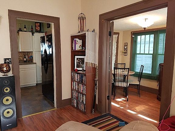 Cozy 2 story home w/ a 240 sq ft detached garage. Main floor includes, living room, dining room, kitchen & 1/2 bath. Upstairs has 2 bedrooms & full bath. French doors to dining room/sitting area, open staircase from front entry & 10' ceilings. Newer features: roof, flooring, paint, light fixtures & electrical panel. Gas heat installed in 2009. Full unfinished basement w/ open laundry room & extra storage. Appliance included: refrigerator, stove/oven & washer/dryer. Great home opportunity!