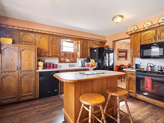 IMMACULATE HOME! Pride of ownership shows. Furnace 6 years per seller. Newly installed wood floor in kitchen. Island stays. First floor family room + living room/dining room. Beautiful deck + patio area. Huge landscaped and treed yard. Large bedrooms with double door closets. Brick fireplace with gas log. Downstairs is finished except open ceiling that has been painted. Large laundry room with tons of cabinets & storage. Wet bar area - would make great man cave! SUBJECT TO SELLERS FINDING A PLACE TO MOVE.