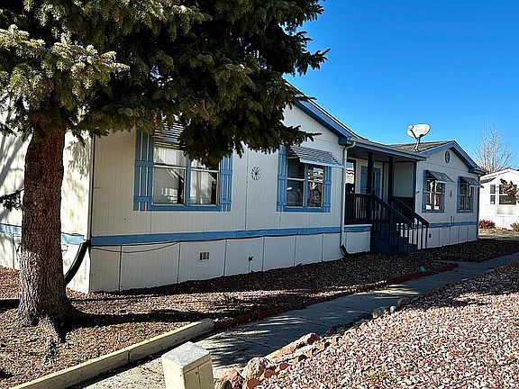 FOR SALE BY OWNER in the highly desired 55+ Community. This well taken care of Shultz is a 28x66 3-bedroom 2 bath home. This is one of the better lots in the community giving you quick access to the clubhouse and an open field behind. Several great things about this home include the spectacular entry way that is quite welcoming. A large living/family room. Dining room with a built-in hutch and large table with 8 chairs that are included in the sale. Large office or sitting area. 5-piece master bath. Nice sized kitchen with plenty of storage, countertop space, and breakfast nook. Central air conditioning for those hot summer days. Storage shed and xeriscape yard for easy maintenance. Located in La Cresta Mobile Estates, this 55+ community has many amenities to offer to include an indoor pool, hot tub, weight room, sauna(his/her), billiards, poker tables, community kitchen, pavilions, BBQ area, and a dog run. Lots of community activities and gatherings throughout the year. Phone calls are best for any additional information on this property. Please call Vern at 719-492-8505 for questions or to set up a time to view the home. HURRY, THIS HOME WON'T LAST LONG!!