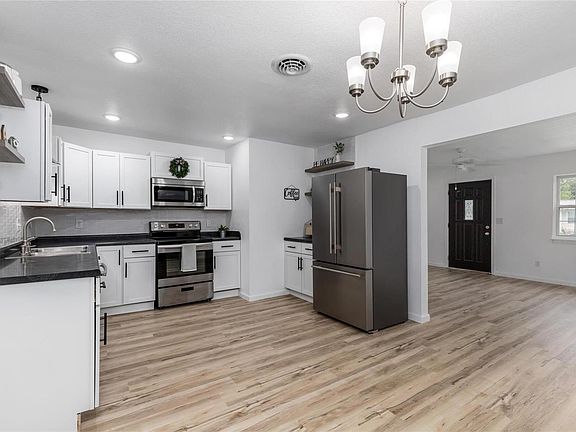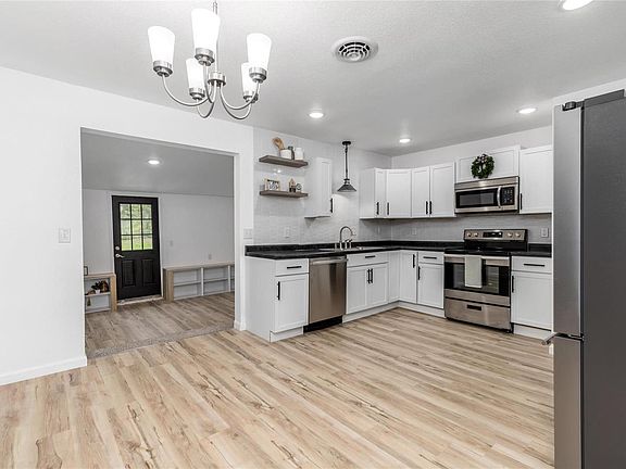 Newly Renovated home with Modern Finishes! Take a look at this 3 bed 2 bath home with 2 living spaces, new dual fuel HVAC system with air scrubber, and updated electric & plumbing. Drive up and notice the neutral gray color scheme with VIBRANT front door, and cozy porch for sitting. Walk in and feel how the light vinyl plank flooring with fresh coat of paint, and updated lighting makes the space feel open and inviting. Living room flows to the GORGEOUS kitchen/dining room. The BRAND NEW Kitchen boasts of modern finishes like white tiled backsplash, floating shelves, & stainless appliances. Need extra living space? Enjoy the separate bonus room with built in shelving, that would make a great space for family movie night, or the kiddos to play. Home also features hall laundry space with rolling barn door, RICH color schemes of the bathroom shower/tub surrounds & new carpeting in the bedrooms. This home is a must see!