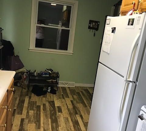 Cute house with beautiful, freshly refinished hardwood floors in living room, hall & both bedrooms. New vinyl in bathroom & kitchen. Small eating area off kitchen. Attached garage. Great for a starter home, small family or older people. Large lot to add on. Right across from Southland School. Great and friendly small town. Newer furnace & a/c. Nice shed in back. This home is move in ready!